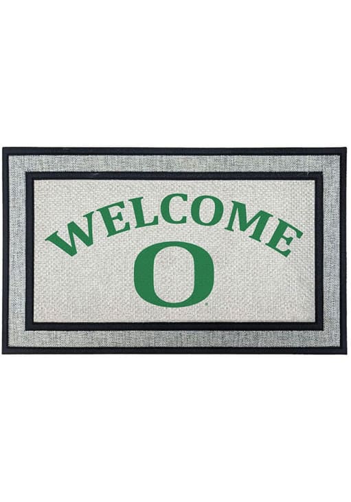 Product Details Product Details Constructed of 100% recycled rubber from tiresStylish two-tone neutral gray backgroundComplements any entrywayMade with weather-resistant, fade-resistant materialsNon-slip backing Officially Licensed This Oregon Ducks Door Mat is a great way to greet guests. Dress up your porch with this Door Mat, which features a team logo.
