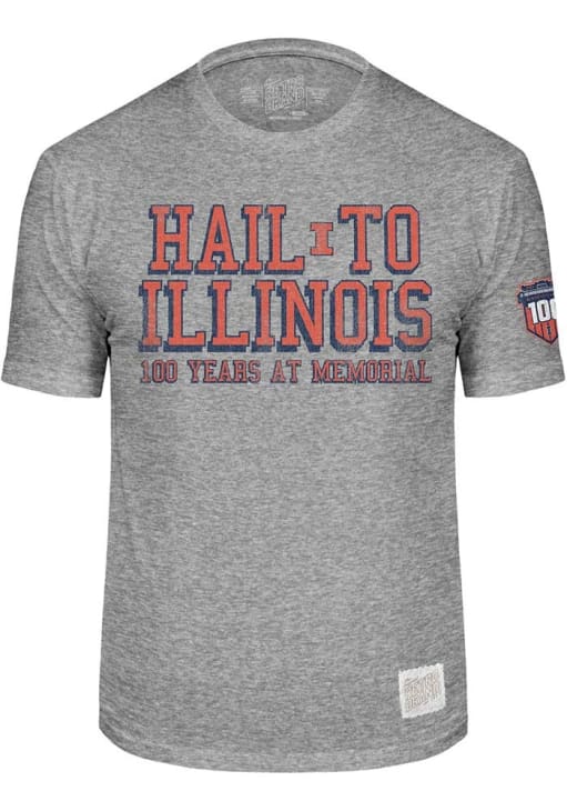 Display your team spirit with this remarkable Illinois Fighting Illini Original Retro Brand Grey Memorial Stadium Short Sleeve T Shirt! The Illinois Short Sleeve Tee showcases a screenprint team slogan with anniversary print on left sleeve that truly sets it apart. Stand out from the crowd and proudly declare your allegiance to the Fighting Illini with this exceptional Grey Illinois T Shirt. Go, Illini, Go!