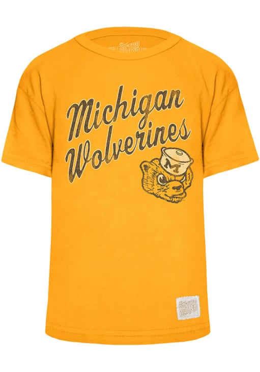Product Details Product Details Screen print team graphic100% cottonShort sleevesCrew neckSewn patch near left hemlinePerfect addition for any young fan!100% COTTONMachine Wash Cold Officially Licensed Your future Michigan Wolverines will be gameday ready in this GoldYouth Short Sleeve Tee. This Arch Mascot T-Shirt features a printed team graphic.