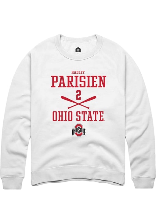 Hadley Parisien Rally Mens White Ohio State Buckeyes NIL Sport Icon Crew Sweatshirt