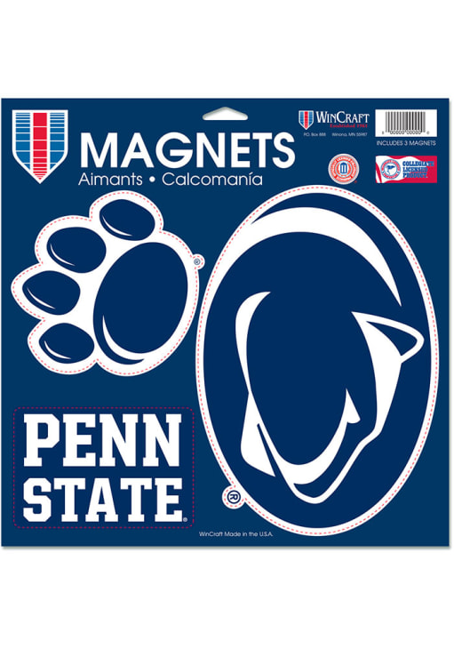 Product Details Product Details Printed vinyl with UV resistant inkFor indoor or outdoor useDie Cut-cut to to shapeMeasures 11"x 11"(sheet)Perfect for showing your team pride!VINYL Officially Licensed Showcase your Penn State Nittany Lions spirit on your fridge at work or at home with this Penn State Nittany Lions 11x11 3pk Magnet. This Magnet features a 3 separate team logo magnets.