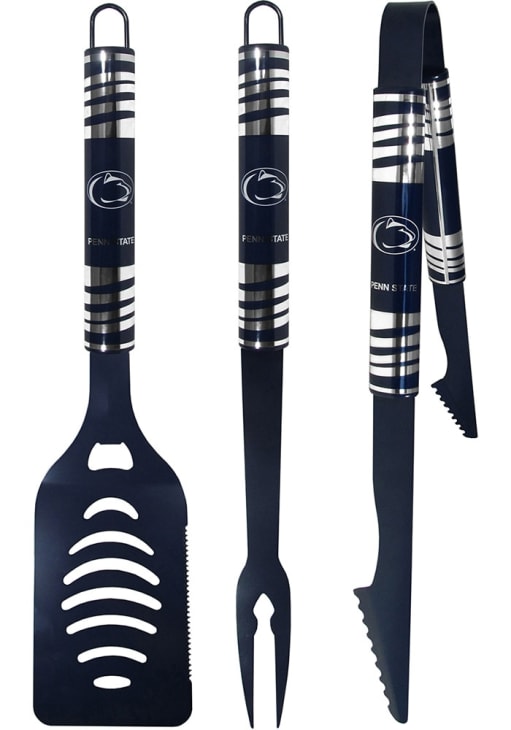 - Grill set includes: spatula with bottle opener and serrated edge, fork and tongs