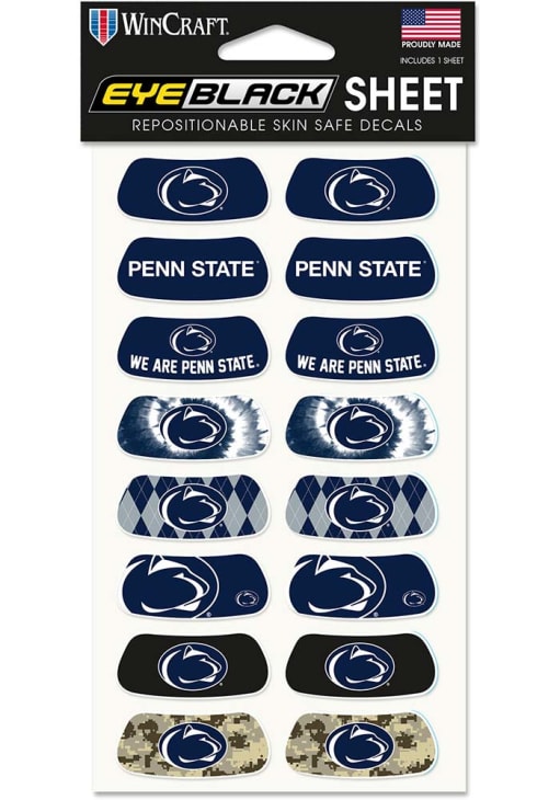 Product Details Product Details Eight different logo designsTeam color logosRepositionableSkin safeGreat accessory for game day!Contains 16 peel and stick face tattoos or 8 pairs of eye black stickers. Officially Licensed Show off your Nittany Lions pride with this Penn State Nittany Lions 8pk Eye Black Tattoo. This Tattoo features a team color logo.
