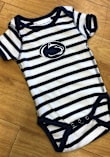 Your little Nittany Lions fan will look adorable in this Baby Navy Blue Penn State Nittany Lions Skylar One Piece! This Penn State Nittany Lions Romper features a heat sealed team logo on center chest.
