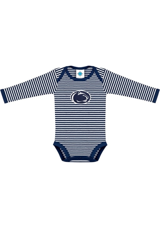 Your little Nittany Lions fan will look cozy and adorable in this Baby Navy Blue Penn State Nittany Lions Stripe One Piece! This Penn State Nittany Lions Romper features a embroidered team graphic.