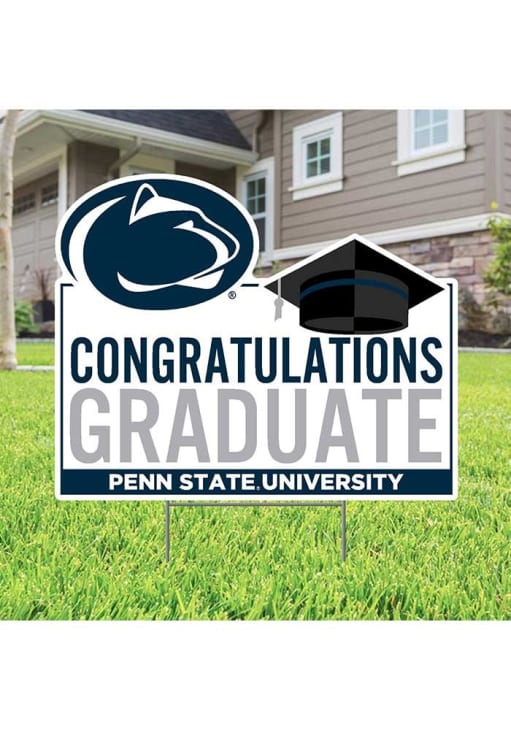 Product Details Product Details Approximatley 19"x22"Cut to Shape Weatherproof PlasticMetal Stakes IncludedFull Color PrintGraduation Sign Officially Licensed Penn State Nittany Lions Congratulations Graduate Yard Sign will let everyone know you root for the Nittany Lions proudly. This Yard Sign features a weather resistant material.