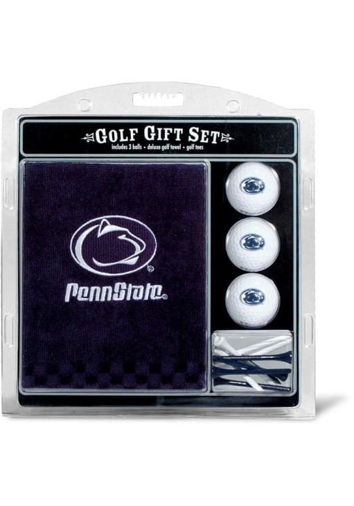 Product Details Product Details 16”x22” tri-folded scrubber towelHigh quality embroidery3 white golf balls with team logo10 color teesGreat gift for the golfer in your life! Officially Licensed Penn State Nittany Lions Embroidered Golf Towel works great to keep your golf clubs clean on the golf course. This Golf Towel features a team logo. Go Lions!