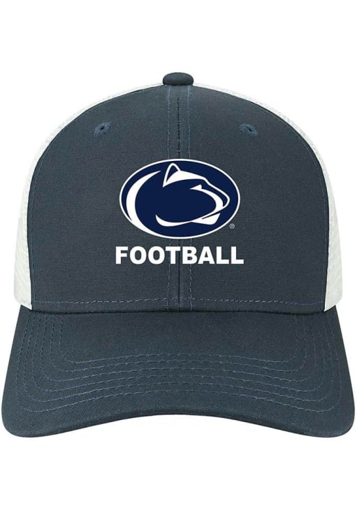 Product Details Product Details Legacy Mid-Pro Snap Trucker HatFront team logoMid-profile crownMatching crown and visorBack trucker meshCotton/Poly BlendCurved BillLow CrownStructuredWipe clean with cloth or cleaning kitImported Officially Licensed This Navy Blue Nittany Lions Adjustable Hat features a front embroidered team logo.
