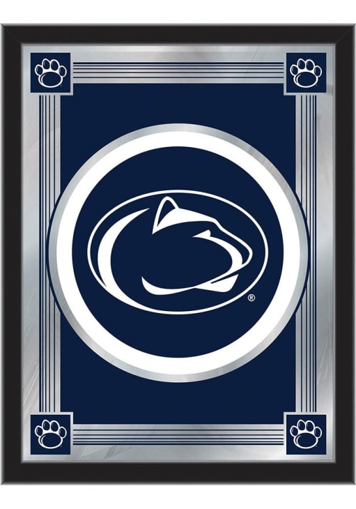 Product Details Product Details Vibrant, full color artwork1/8" glass with Mirrored Accents15" x 26" matt black wood frameSaw-tooth hanger for easy hangingGreat gift for any occasion!USA Officially Licensed This Penn State Nittany Lions Logo Hanging Back Bar Mirror is a great addition to show your Nittany Lions pride. A great match to the game room bar, this Back Bar Mirror features a team logo that will be sure to draw attention to your fan cave.