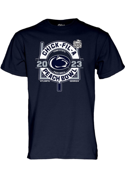 Display your team spirit with this remarkable Penn State Nittany Lions Blue 84 Navy Blue 2023 Goal Line Peach Bowl Bound Short Sleeve T Shirt! The Penn State Short Sleeve Tee showcases a screen print Penn State Nittany Lions Football 2023-2024 Elevated Bowl Bound graphic on front chest that truly sets it apart. Stand out from the crowd and proudly declare your allegiance to the Nittany Lions with this exceptional Navy Blue Penn State T Shirt. Go Lions!