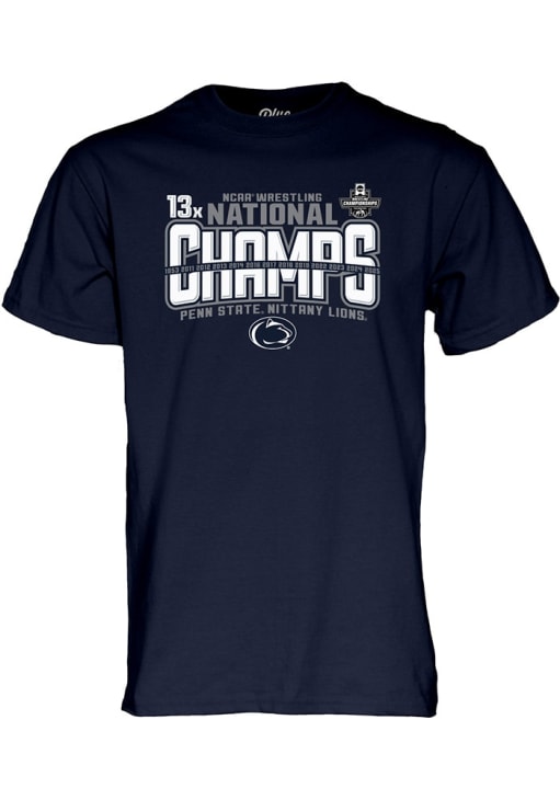 Display your team spirit with this remarkable Penn State Nittany Lions Blue 84 Navy Blue 2025 Wrestling National Champions Short Sleeve T Shirt! The Penn State Short Sleeve Tee showcases a screen print event graphic across chest that truly sets it apart. Stand out from the crowd and proudly declare your allegiance to the Nittany Lions with this exceptional Navy Blue Penn State T Shirt. Go Lions!
