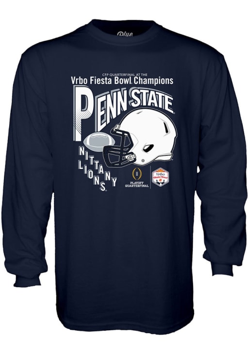 Show your Penn State Nittany Lions spirit in this Penn State Navy Blue T Shirt! This Penn State Football 2024 Fiesta Bowl Champions Long Sleeve T Shirt makes a great layer for cooler nights cheering on the Nittany Lions. Featuring a screenprint Fiesta Bowl champion graphic on front chest, this Penn State Nittany Lions Long Sleeve Tee is an essential addition for every fan. Go Lions!
