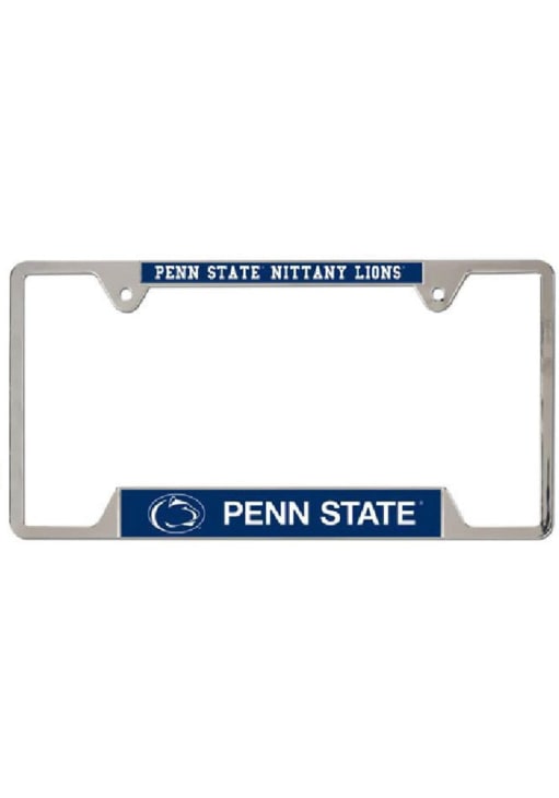 Product Details Product Details Fits any standard car license plate, front or backChrome plated cast zinc frameDecorated with two full color insertsTwo mounting holes on the top of the frameStandard 6"x12" sizeMETALUSA Officially Licensed This Nittany Lions License Plate Holder features a white Penn State Nittany Lions Penn State with logo and a blue background.