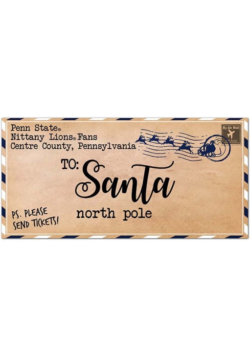Product Details Product Details Digitally printedTeam colorsGreat for indoor home decorShow your team pride!Measures 6"x12"USA Officially Licensed This Penn State Nittany Lions To Santa Decor will make your home or office festive and ready for the holidays. This Decor features a team logo.