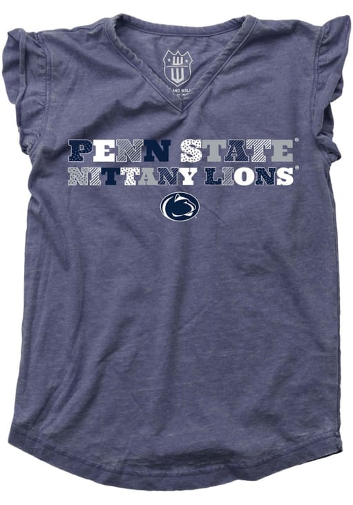 Show your support for Nittany Lions in this Toddler Girls Navy Blue Penn State Nittany Lions Short Sleeve Tee! This Ruffle Multi Font Fashion T-Shirt features a screenprint team graphic that pairs perfect with any wardrobe. Get ready to show pride for your favorite team as you cheer "Go Lions"