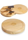 - Board swings open to reveal three cheese tools with parawood handles