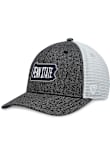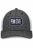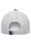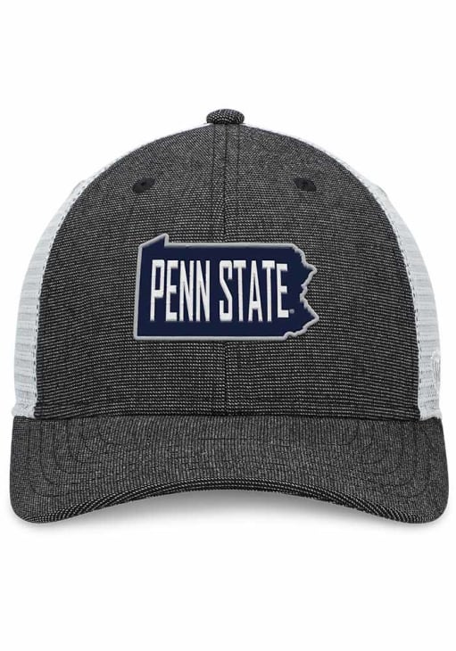 Product Details Product Details State shape patch with team name fill on center crownHeathered cotton crown and visorWoven team logo labelSnap closureTOW side logoCOTTON/POLY MESHCurved BillHigh CrownStructuredWipe clean with cloth or cleaning kitImported Officially Licensed This Navy Blue Nittany Lions Adjustable Hat features a front state shape with team name inside on a heathered crown and visor with back trucker mesh.