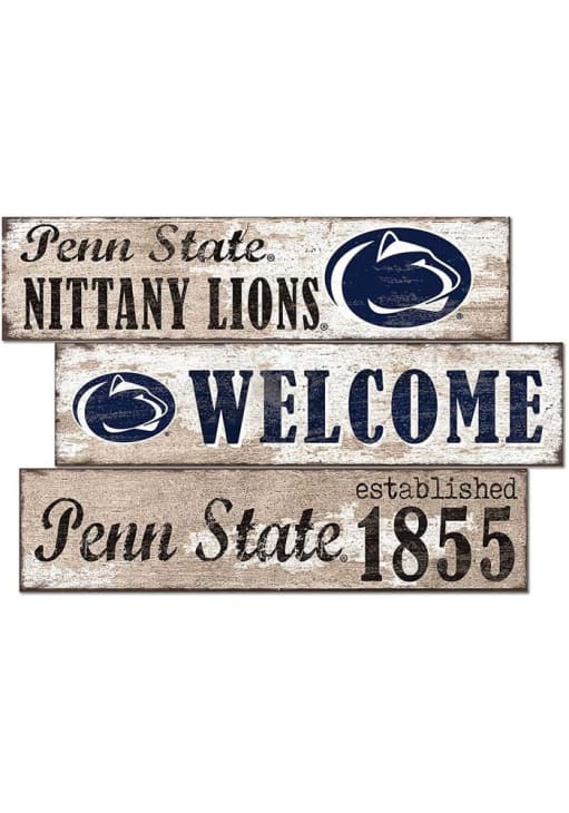 Product Details Product Details Features team logoMade of medium density fiberboardPerfect for showing off team spiritMakes a great gift for any sports fanMade in the USA Officially Licensed This Penn State Nittany Lions Welcome 3 Plank Sign is great for decorating your home Nittany Lions team spirit. Take your team spirit to the next level with this Sign, which features a team logo. Go Lions!