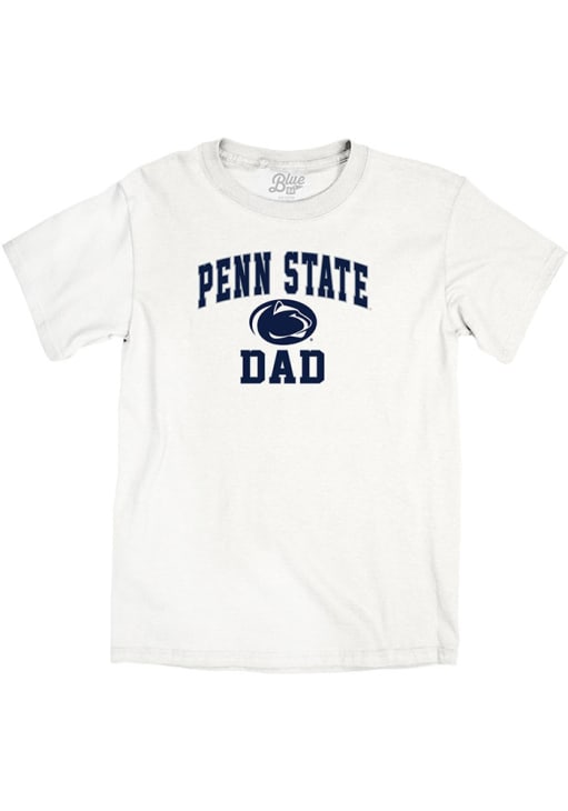 Display your team spirit with this remarkable Penn State Nittany Lions Blue 84 White Dad Graphic Short Sleeve T Shirt! The Penn State Short Sleeve Tee showcases a screen print of dad graphic on front chest that truly sets it apart. Stand out from the crowd and proudly declare your allegiance to the Nittany Lions with this exceptional White Penn State T Shirt. Go Lions!