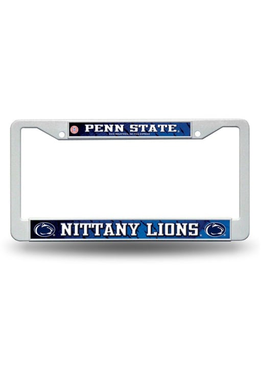 Product Details Product Details Molded durable white plasticHigh quality screen printed graphicsTwo mounting holes at the top of the frameFits most U.S. standard sized license platesShow your team spirit in style!PLASTICUSA Officially Licensed This Nittany Lions License Plate Holder features a white Penn State Nittany Lions with logos and a blue background.