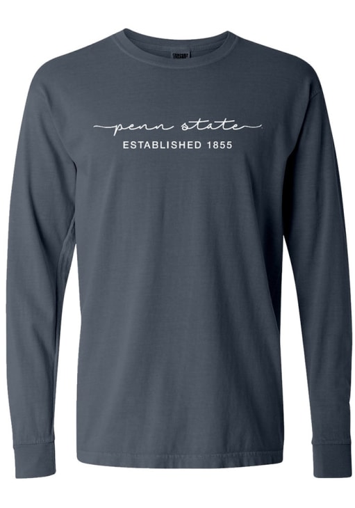 Show your Penn State Nittany Lions spirit in this Penn State Blue T-Shirt! This Penn State Classic Script Long Sleeve T-Shirt makes a great layer for cooler nights cheering on the Nittany Lions. Featuring a center front screen print team name, this Penn State Nittany Lions Long Sleeve LS Tee is an essential addition for every fan. Go Lions!