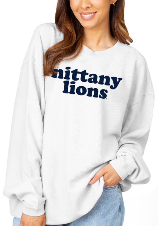 Gear up for the ultimate game day experience with this remarkable Penn State Nittany LionsWomens White Corded Design Crew Sweatshirt! Designed with the true fan in mind, this Nittany Lions Long Sleeve Sweatshirt features a screen print team name on center chest. Stay warm and comfortable with this Womens Penn State Nittany Lions Crew Sweatshirt.