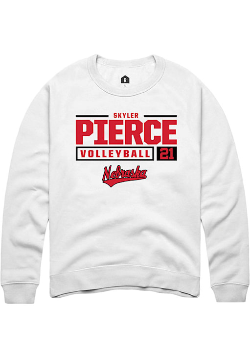 Skyler Pierce Rally Mens White Nebraska Cornhuskers NIL Stacked Box Crew Sweatshirt