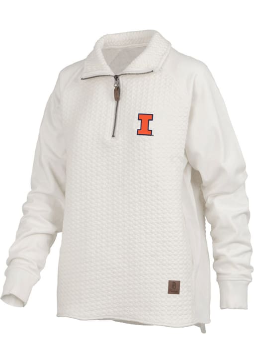Embrace the warmth and showcase your Fighting Illini pride with our Illinois Fighting Illini Long Sleeve Qtr Zip. This Womens Ivory Salem Long Sleeve Pullover offers a embroidered team logo on left chest for the perfect combination of comfort and style. Elevate your everyday look with this must-have Illinois Fighting Illini Long Sleeve Qtr Zip.