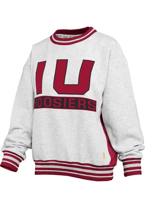 Gear up for the ultimate game day experience with this remarkable Indiana HoosiersWomens Ash Endzone Crew Sweatshirt! Designed with the true fan in mind, this Hoosiers Long Sleeve Sweatshirt features a poly stain applique with embroidered mascot name on center chest. Stay warm and comfortable with this Womens Indiana Hoosiers Crew Sweatshirt.