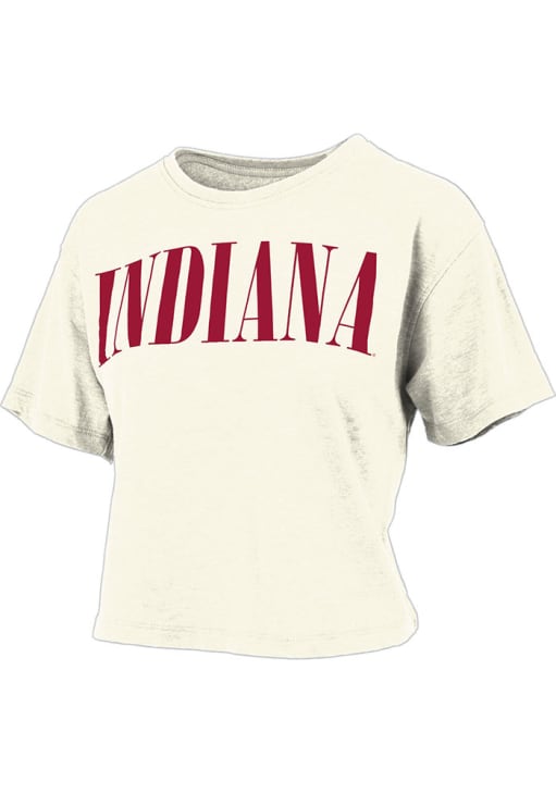 Display your team spirit with this remarkable Indiana Hoosiers Ivory Burnout Showtime Crop Short Sleeve T-Shirt! The Indiana Short Sleeve Tee showcases a screen print team name on center chest that truly sets it apart. Stand out from the crowd and proudly declare your allegiance to the Hoosiers with this exceptional Ivory Indiana T-Shirt. Indiana, Our Indiana!