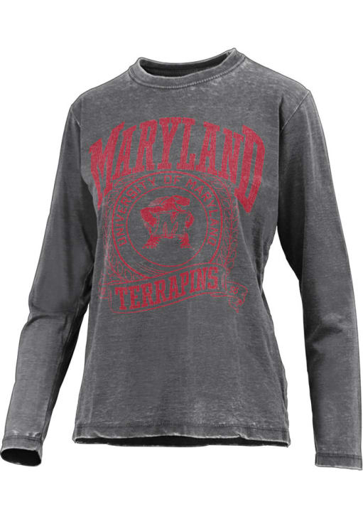 Show your Maryland Terrapins spirit in this Maryland Black T-Shirt! This Maryland Collegiate Long Sleeve T-Shirt makes a great layer for cooler nights cheering on the Terrapins. Featuring a screenprint team name and team logo on center chest, this Maryland Terrapins Long Sleeve LS Tee is an essential addition for every fan. Go Terps!