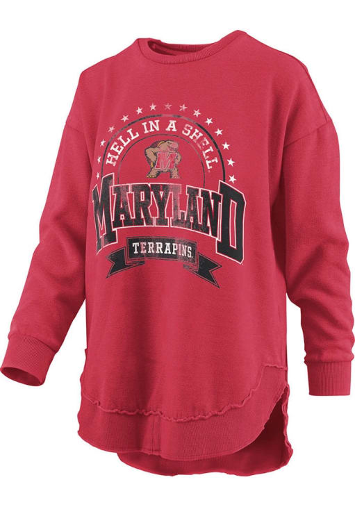 Gear up for the ultimate game day experience with this remarkable Maryland TerrapinsWomens Red Melange Poncho Crew Sweatshirt! Designed with the true fan in mind, this Terrapins Long Sleeve Sweatshirt features a screenprint team name and team logo on center chest. Stay warm and comfortable with this Womens Maryland Terrapins Crew Sweatshirt.