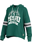 Embrace your Spartans pride and showcase your team spirit with confidence in this Michigan State Spartans Long Sleeve Hoodie! Stay warm and stylish with the MSU Womens Green Moonstone Hooded Sweatshirt. Designed with screen print team name and logo on center front, this Spartans Long Sleeve Hoodie is a must-have for dedicated fans.