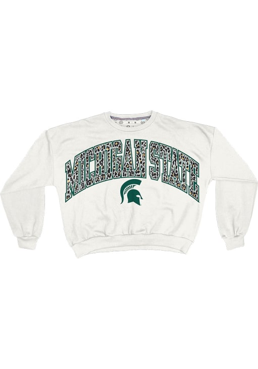 Gear up for the ultimate game day experience with this remarkable Michigan State SpartansWomens White Sheba Animal Crew Sweatshirt! Designed with the true fan in mind, this Spartans Long Sleeve Sweatshirt features a screen print team name and logo on center chest. Stay warm and comfortable with this Womens MSU Spartans Crew Sweatshirt.