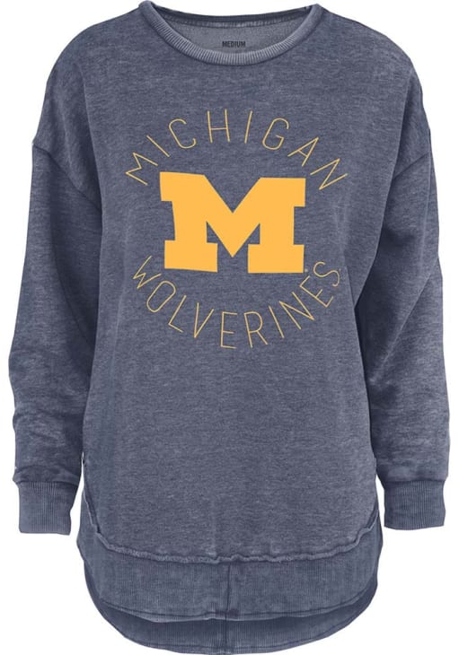 Gear up for the ultimate game day experience with this remarkable Michigan WolverinesWomens Blue Melange Crew Sweatshirt! Designed with the true fan in mind, this Wolverines Long Sleeve Sweatshirt features a screen print team name and logo on center chest. Stay warm and comfortable with this Womens Michigan Wolverines Crew Sweatshirt.