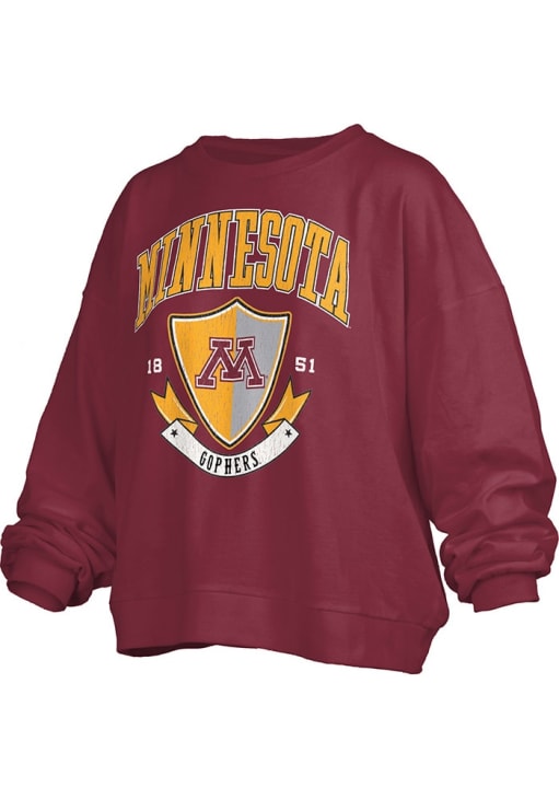 Gear up for the ultimate game day experience with this remarkable Minnesota Golden GophersWomens Maroon Buckler Janise Crew Sweatshirt! Designed with the true fan in mind, this Golden Gophers Long Sleeve Sweatshirt features a screen print team name and logo on center chest. Stay warm and comfortable with this Womens Minnesota Golden Gophers Crew Sweatshirt.
