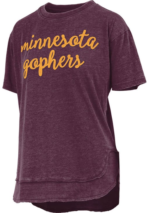 Display your team spirit with this remarkable Minnesota Golden Gophers Maroon Chelsea Short Sleeve T-Shirt! The Minnesota Short Sleeve Tee showcases a chenille with lurex interwoven applique team name on center chest that truly sets it apart. Stand out from the crowd and proudly declare your allegiance to the Golden Gophers with this exceptional Maroon Minnesota T-Shirt. Fight, Gophers!