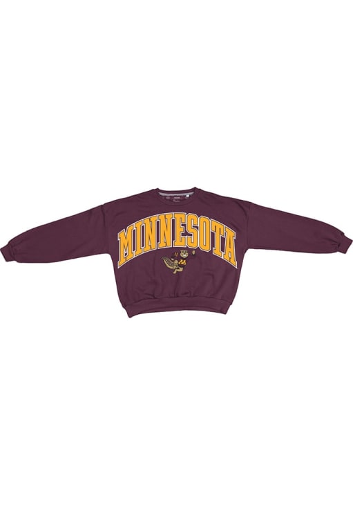 Gear up for the ultimate game day experience with this remarkable Minnesota Golden GophersWomens Maroon Sweeper Crew Sweatshirt! Designed with the true fan in mind, this Golden Gophers Long Sleeve Sweatshirt features a embroidered team name and logo on center chest. Stay warm and comfortable with this Womens Minnesota Golden Gophers Crew Sweatshirt.