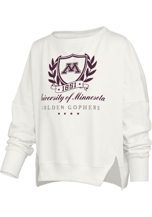 Gear up for the ultimate game day experience with this remarkable Minnesota Golden GophersWomens White Field Day Crew Sweatshirt! Designed with the true fan in mind, this Golden Gophers Long Sleeve Sweatshirt features a embroidered team name and logo on center chest. Stay warm and comfortable with this Womens Minnesota Golden Gophers Crew Sweatshirt.