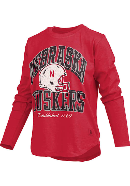 Show your Nebraska Cornhuskers spirit in this Nebraska T-Shirt! This Nebraska Helmet Cave Long Sleeve T-Shirt makes a great layer for cooler nights cheering on the Cornhuskers. Featuring a WMN RED NEB HSKR HELMET CAVE, this Nebraska Cornhuskers Long Sleeve LS Tee is an essential addition for every fan. Go Huskers!