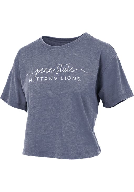 Display your team spirit with this remarkable Penn State Nittany Lions Navy Blue Vintage Crop Short Sleeve T-Shirt! The Penn State Short Sleeve Tee showcases a screen print team name on center chest that truly sets it apart. Stand out from the crowd and proudly declare your allegiance to the Nittany Lions with this exceptional Navy Blue Penn State T-Shirt. Go Lions!