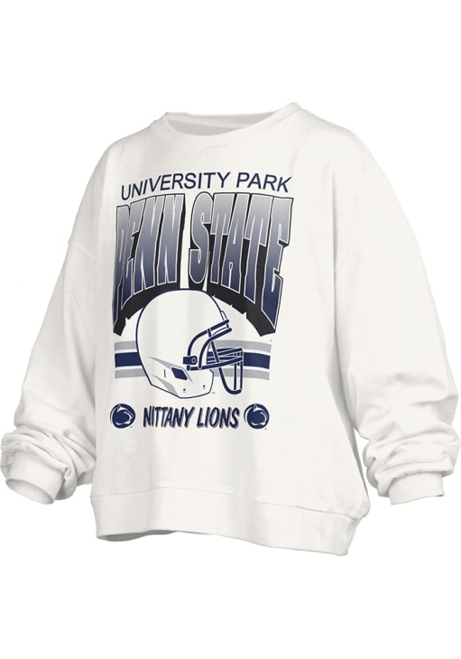 Gear up for the ultimate game day experience with this remarkable Penn State Nittany LionsWomens White Sheffield Crew Sweatshirt! Designed with the true fan in mind, this Nittany Lions Long Sleeve Sweatshirt features a screenprint team graphic on center chest. Stay warm and comfortable with this Womens Penn State Nittany Lions Crew Sweatshirt.