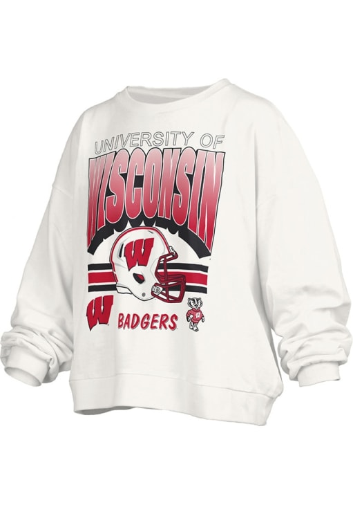 Gear up for the ultimate game day experience with this remarkable Wisconsin BadgersWomens White Janise Crew Sweatshirt! Designed with the true fan in mind, this Badgers Long Sleeve Sweatshirt features a screen print team name and logo on center chest. Stay warm and comfortable with this Womens Wisconsin Badgers Crew Sweatshirt.