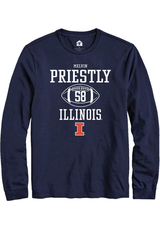 Show your Illinois Fighting Illini spirit in this Illinois Navy Blue T Shirt! This Illinois Football NIL Sport Icon Long Sleeve T Shirt makes a great layer for cooler nights cheering on the Fighting Illini. Featuring a custom graphic with player's name and number, this Illinois Fighting Illini Long Sleeve Tee is an essential addition for every fan. Go, Illini, Go!