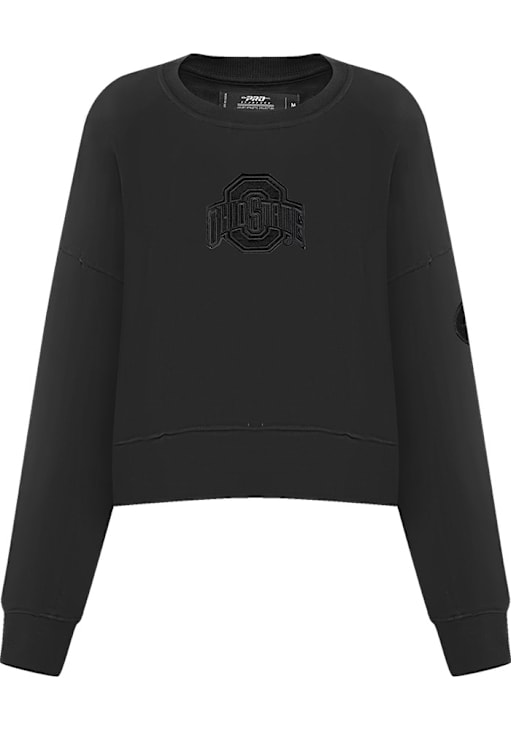 Gear up for the ultimate game day experience with this remarkable Ohio State BuckeyesWomens Black Triple Black Crew Sweatshirt! Designed with the true fan in mind, this Buckeyes Long Sleeve Sweatshirt features a rhinestone team name and logo on center chest. Stay warm and comfortable with this Womens The Ohio State University Buckeyes Crew Sweatshirt.