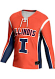 Every Illinois fan needs a Youth Orange Illinois Fighting Illini Hockey Jersey! This Illinois Jersey features a fully sublimated jersey with an active and comfortable construction. Dress up to match the spirit of Fighting Illini for gameday!