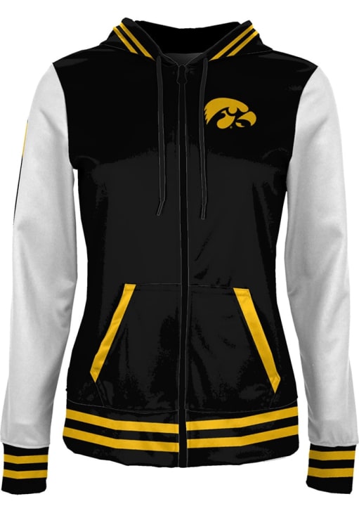 Stay warm and cozy with this Iowa Hawkeyes Womens Black Letterman Light Weight Jacket! Cheer on the Hawkeyes in this Hawkeyes Light Weight Jacket. With a fully sublimated full zip hoodie with an active and comfortable construction, you won't want to be caught without this Light Weight Jacket on gameday.