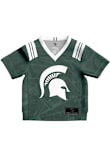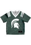 Product Details Product Details Stitched jock tag at bottom left hemScreen-print front and back numbersTagless collar with interior tapingClean-finished internal seamsStandard fit: not too tight and not too looseFit: True to Size100% POLYESTERMachine wash coldImported Officially Licensed Every young MSU fan needs a Baby Green Michigan State Spartans Football Jersey! This MSU Jersey features a screenprint number on front with team name and number on back. Dress up your little Spartans for gameday!