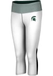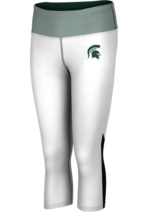 Gear up for your workout in these Michigan State Spartans Womens Green Pants. With a fully sublimated capri legging with an active and comfortanle construction, these MSU Athletic Pants are a great way to show your Spartans pride at the gym!