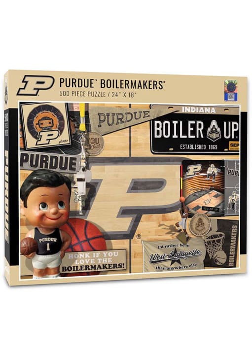 Product Details Product Details 500 pieces18" x 24"Team colors, slogan and logoUnique team collectiblePerfect way to show off your team spirit!Stainless Steel Officially Licensed Give yourself a challenge putting together this Purdue Boilermakers 500 Piece Retro Basketball Puzzle. This Puzzle features a unique slogans and stadiums.